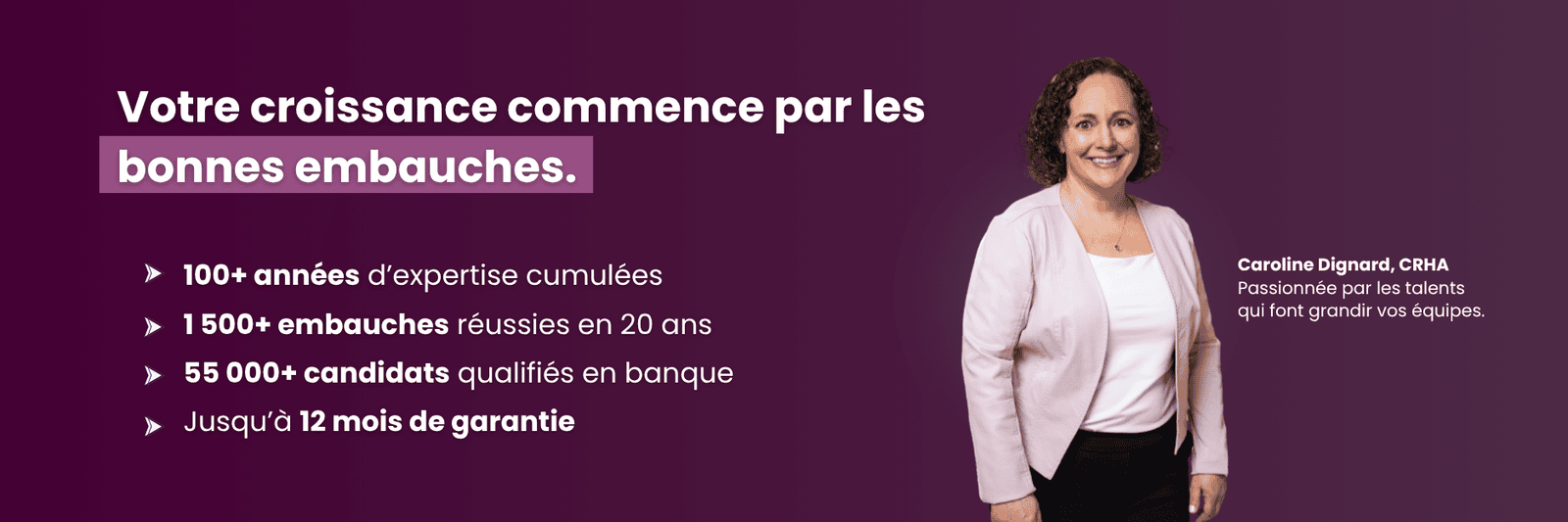 Vous n’avez pas de département RH ou manquez de ressources internes ? Confiez-nous la gestion de vos ressources humaines. Nos CRHA prennent en charge vos besoins de manière partielle ou complète, selon la fréquence souhaitée. Présents comme membres à part entière de votre équipe, ils assurent une gestion opérationnelle fluide, alignée sur vos objectifs d’affaires.